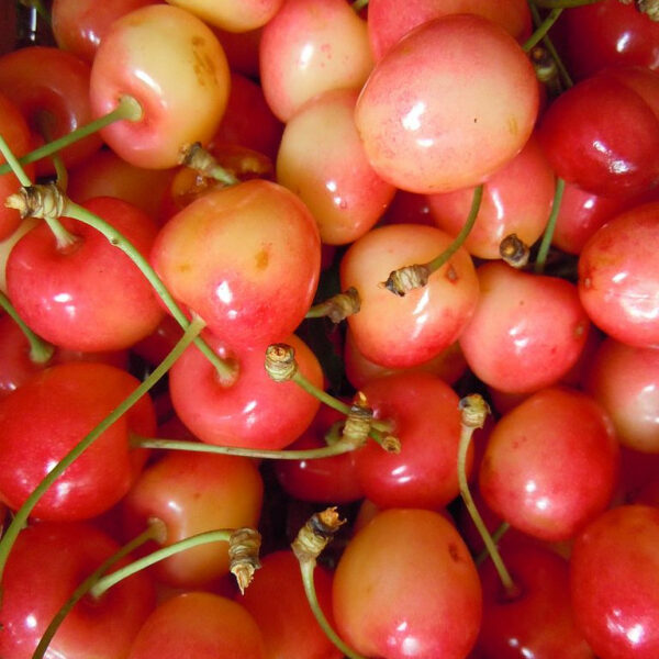 Le Bigarreau Rainier est une variété de cerisier doux et renommée. Ses cerises, de grande taille, présentent une couleur jaune doré avec parfois une teinte rosée et une saveur exceptionnellement sucrée. Ce fruit juteux est très apprécié pour sa douceur et sa faible acidité. Le cerisier Bigarreau Rainier est un arbre vigoureux, idéal pour les jardins et les vergers grâce à sa productivité et son attrait visuel, et il est souvent utilisé à des fins commerciales.