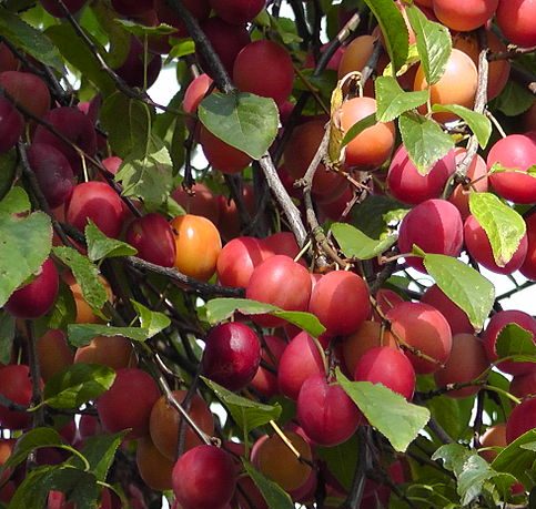 - La variété est parfois annoncée autofertile, mais la fructification est souvent plus régulière en présence d’un autre Prunus dont la floraison se chevauche (prunier-cerise/myrobolan, prunier, abricotier).
