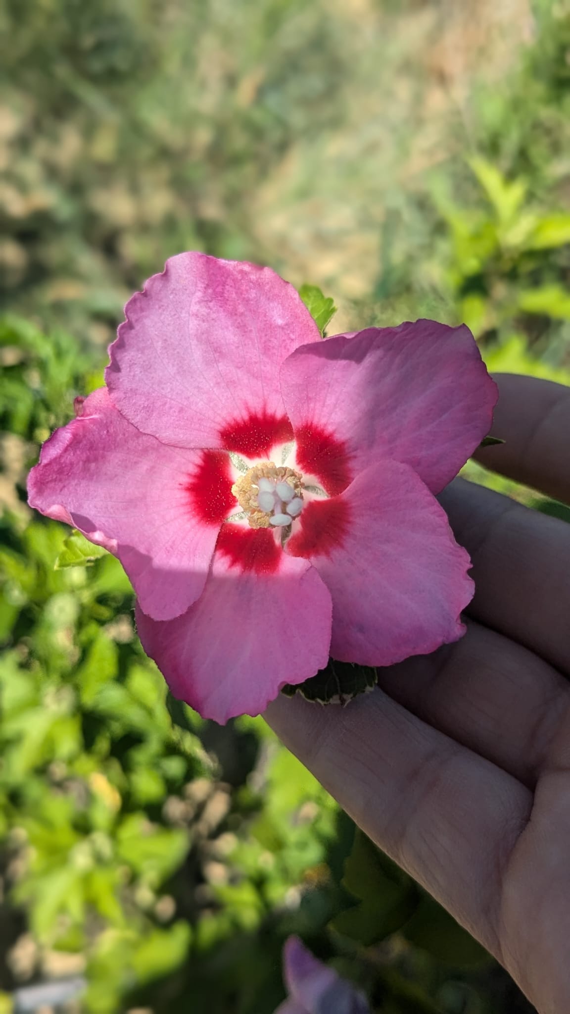 L’Hibiscus syriacus ‘Woodbridge’ est une variété d’althéa très florissante et vigoureuse, souvent choisie pour les jardins. Ce jeune arbuste au port vertical peut sembler un peu rigide, mais il produit des fleurs simples d’un rose vif avec une gorge rouge intense. Bien que chaque fleur soit de courte durée, elles se renouvellent constamment et en grande quantité, de la fin de l’été au début de l’automne. Idéal en haie fleurie, massif ou grand bac près de la maison, cet arbuste rustique se cultive facilement au soleil dans un sol ordinaire.