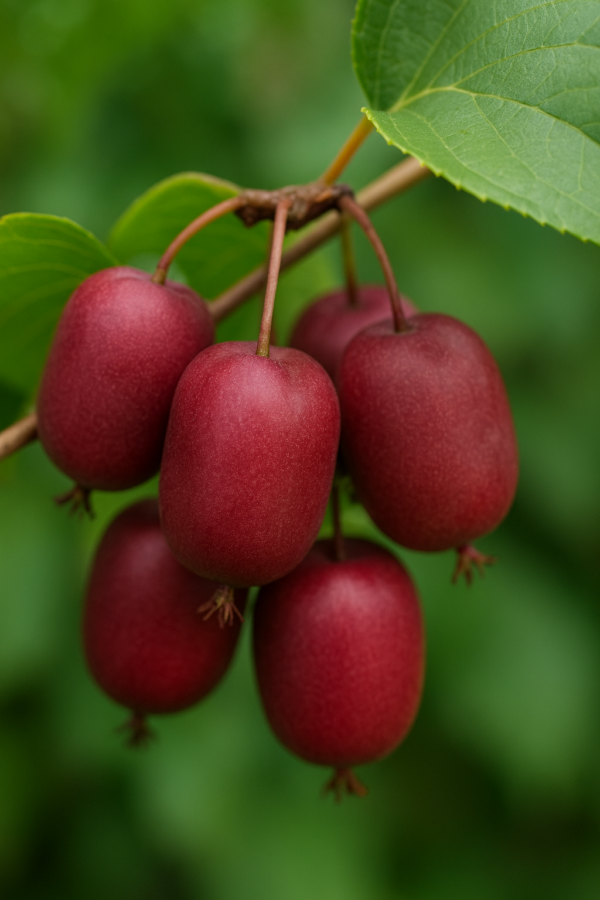 Variété femelle : associer un mâle d’Actinidia arguta (ex. Weiki mâle) pour fructification optimale.
