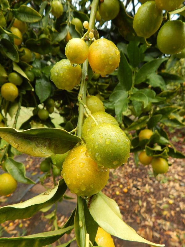 Kumquat très doux, agréable à croquer avec la peau, bon aussi confit. Récolte de janvier à avril, selon le climat, l’altitude et l’année.