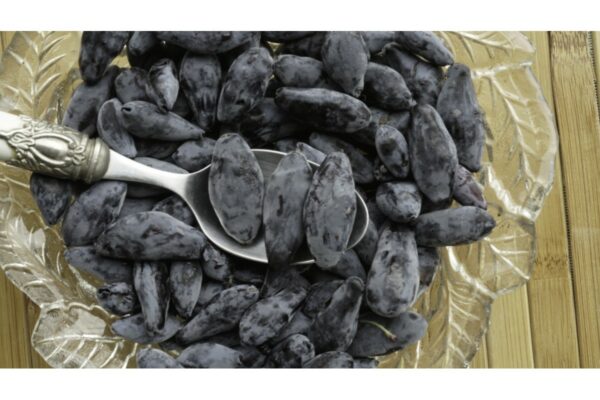 Pack duo de camerisiers (Lonicera caerulea ‘Zojka’ + ‘Wojtek’) assurant une pollinisation parfaite, avec des fruits de taille moyenne (~1,5 g), sucre ~14 °Brix, et richesse antioxydante. Récolte précoce.
