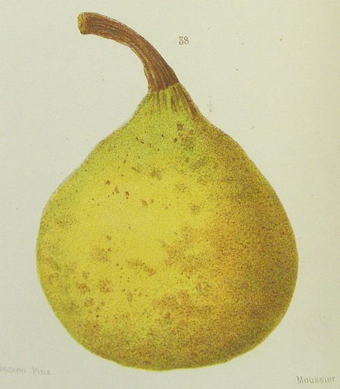 Poire de table à cueillir au bon stade : trop mûre sur l’arbre, elle peut devenir vite molle. Intéressante aussi en compote.