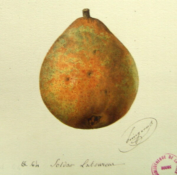 ‘Soldat Laboureur’ est une ancienne variété rustique, souvent citée pour sa robustesse et sa bonne qualité en poire de table. Elle convient bien aux vergers familiaux recherchant une variété traditionnelle.