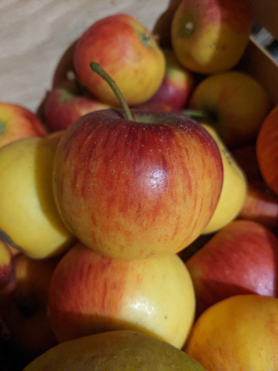 Pomme très croquante et aromatique, récoltée fin septembre à mi-octobre selon climat/année. Très bonne conservation : consommation possible tout l’hiver selon stockage.