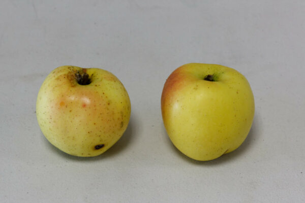 Pomme jaune à arôme typé “banane”, douce et parfumée. Récolte de septembre à fin octobre selon climat/année, souvent meilleure après stockage (consommation hivernale).