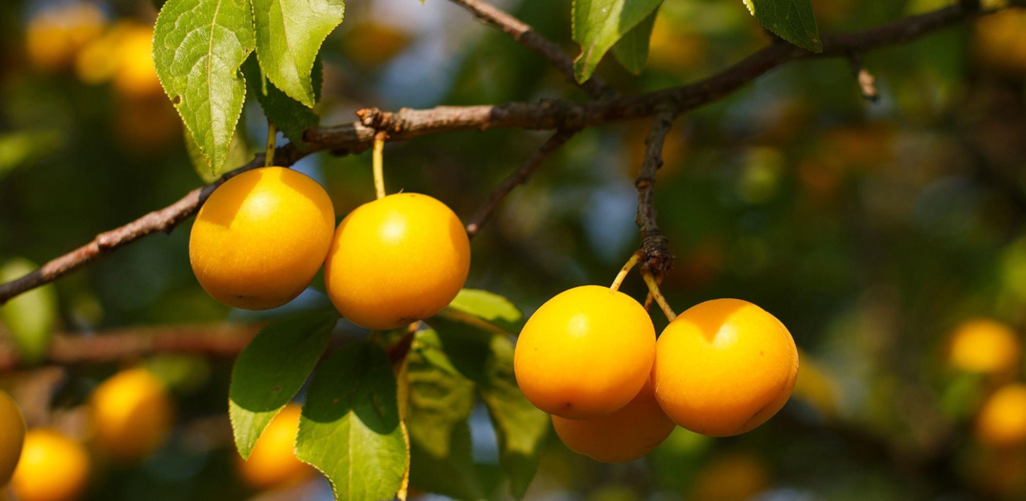 Prune jaune à saveur douce et parfumée, bonne en frais et en cuisine. Récolte de fin août à fin septembre (selon le climat, l’altitude et l’année).