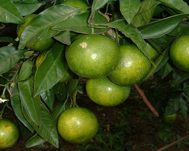 Fruit aplati de taille généreuse, à peau verte ou orange, au goût acidulé ou sucré selon maturité.